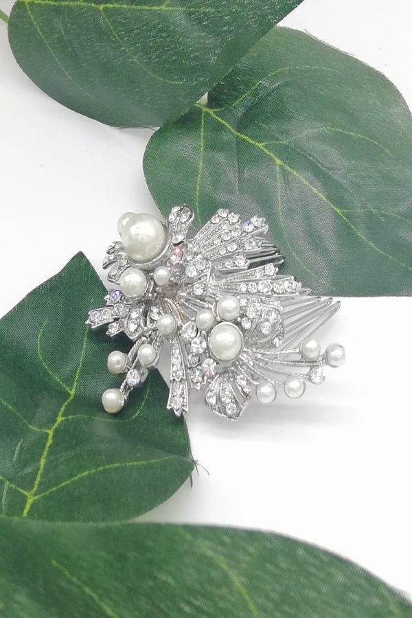 PEINETA PEQUEÑA CON FLOR METALIZADA Y PERLAS