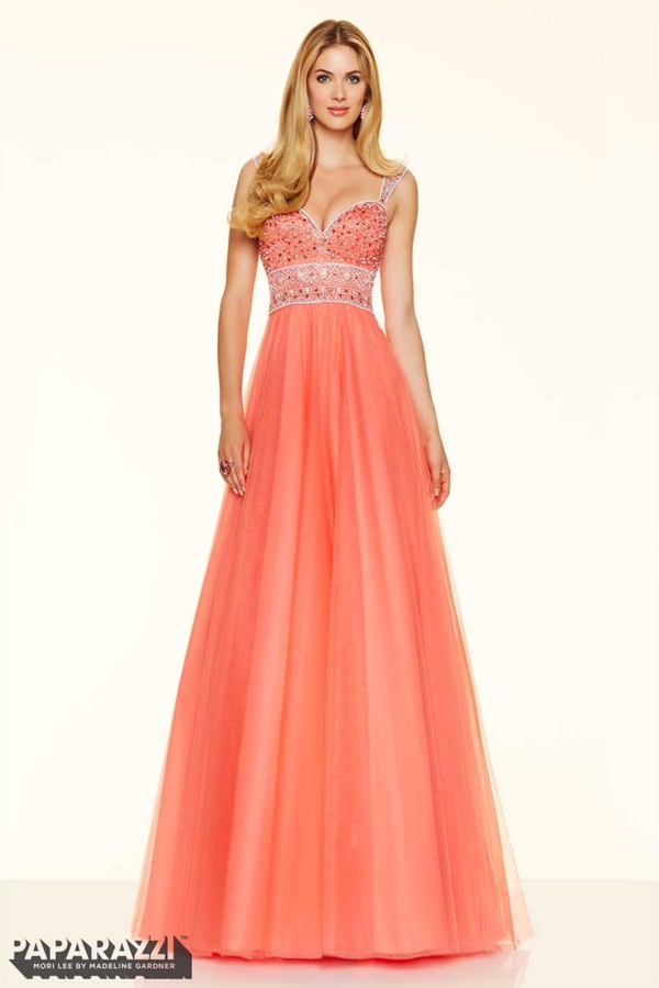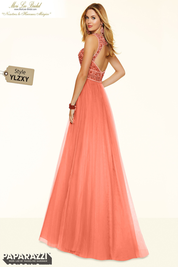 VESTIDO DE QUINCEAÑOS ESCOTE CORAZÓN CON TIRAS EN HOMBRO BORDADAS. CORPIÑO BORDADO EN CRISTALES MATIZADOS. FALDA CORTE EN A ELABORADA EN TULL MÓRBIDO.