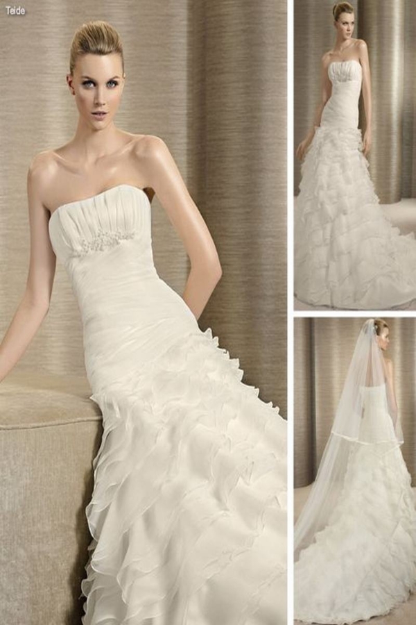 VESTIDO STRAPLES DRAPEADO EN CORPIÑO Y OTRO DRAPEADO ASIMETRICO HASTA CADERA , FALDA EN CAPAS EN ORGANZA